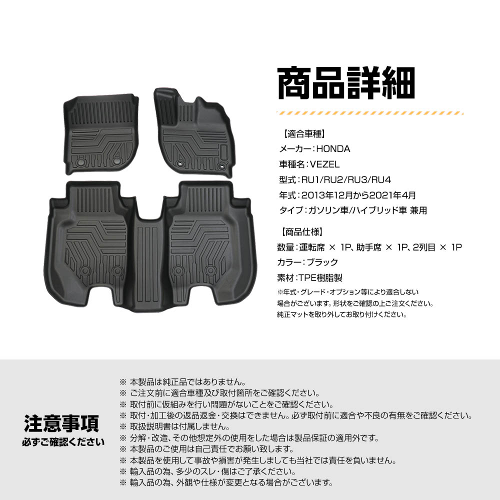 ヴェゼル RU1~4 3D立体設計 3Dマット 3D立体マット フロアマット 防水マット ラバーマット 防水 ラバー フロア 立体カーマット 汚れ防止