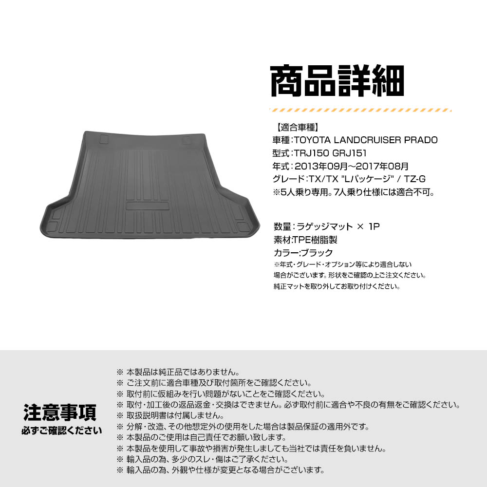 ランドクルーザープラド 防水マット ラゲッジマット トランクマット ラゲッジトレイ トランクトレイ カーゴマット 150系 5人乗り TRJ150
