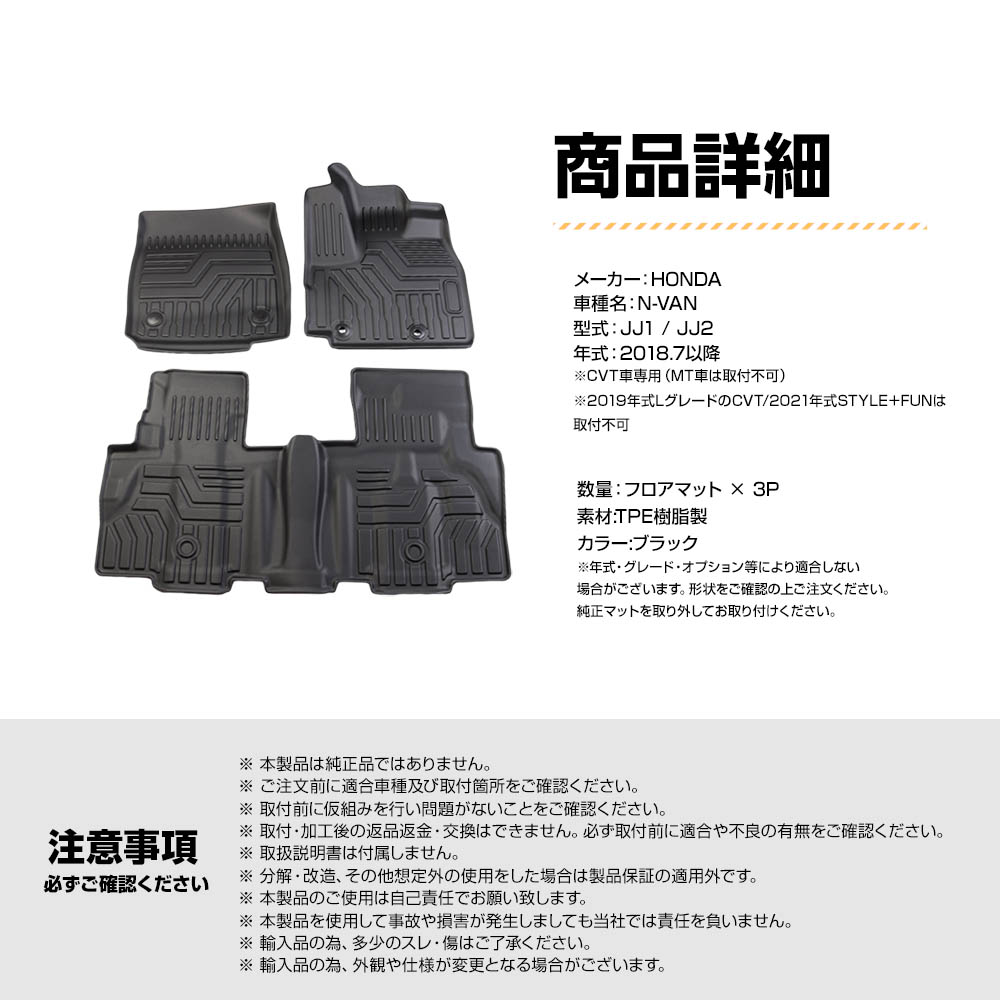 • N-VAN JJ1 JJ2 3D立体設計 3Dマット 3D立体マット 3D フロアマット 防水マット ラバーマット 防水 ラバー フロア 立体カーマット 汚れ防止