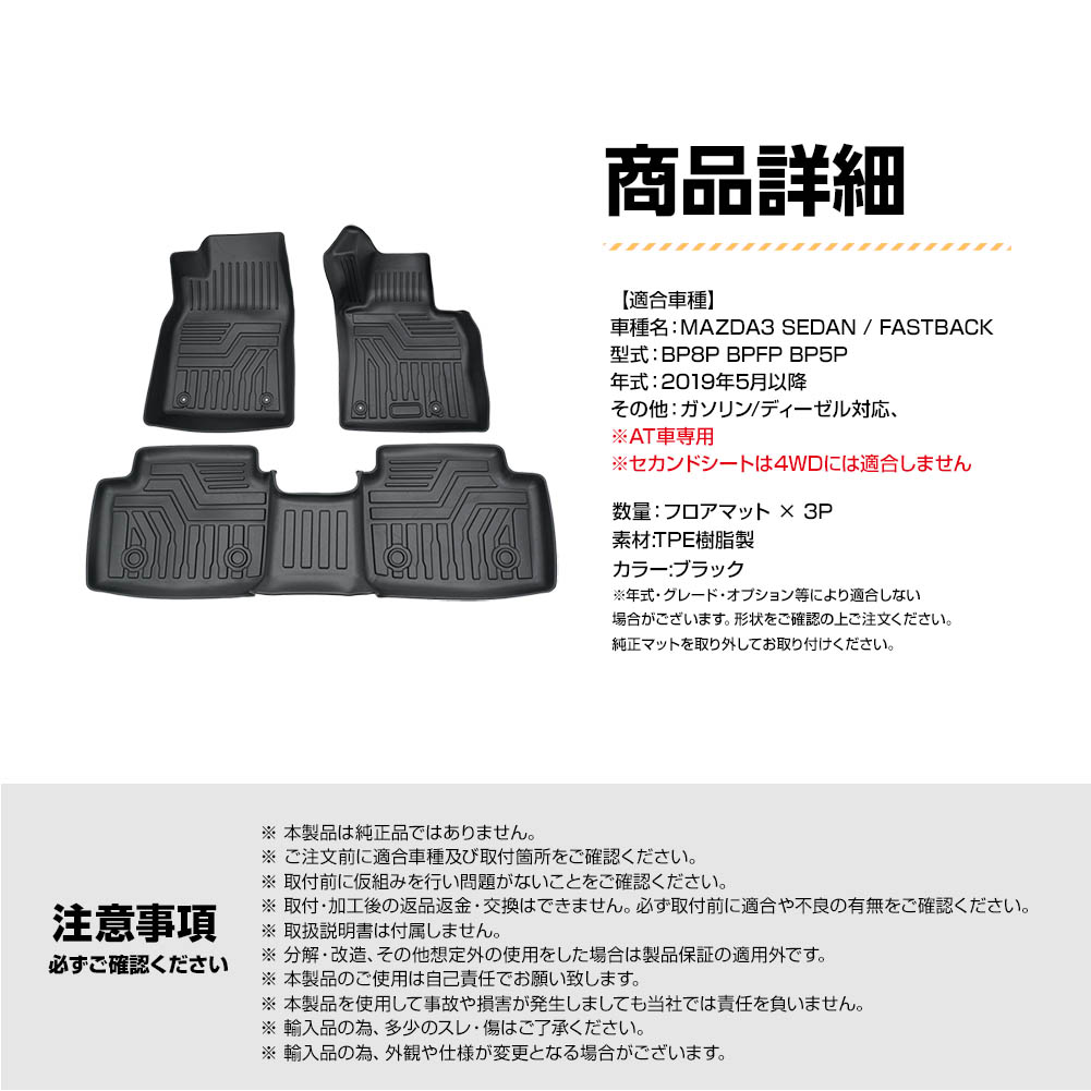 MAZDA3セダン/ファストバック用3D立体フロアマット!