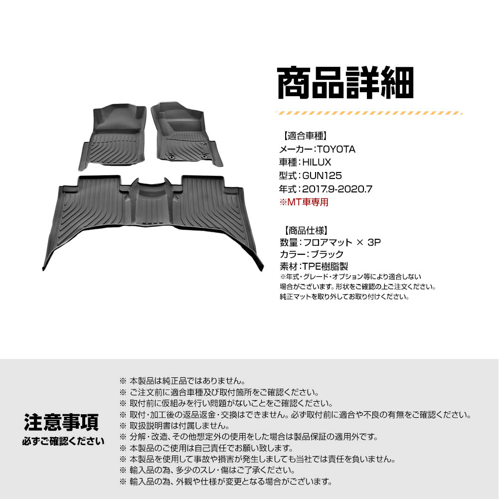 ハイラックス専用3D立体フロアマット!(MT車専用)