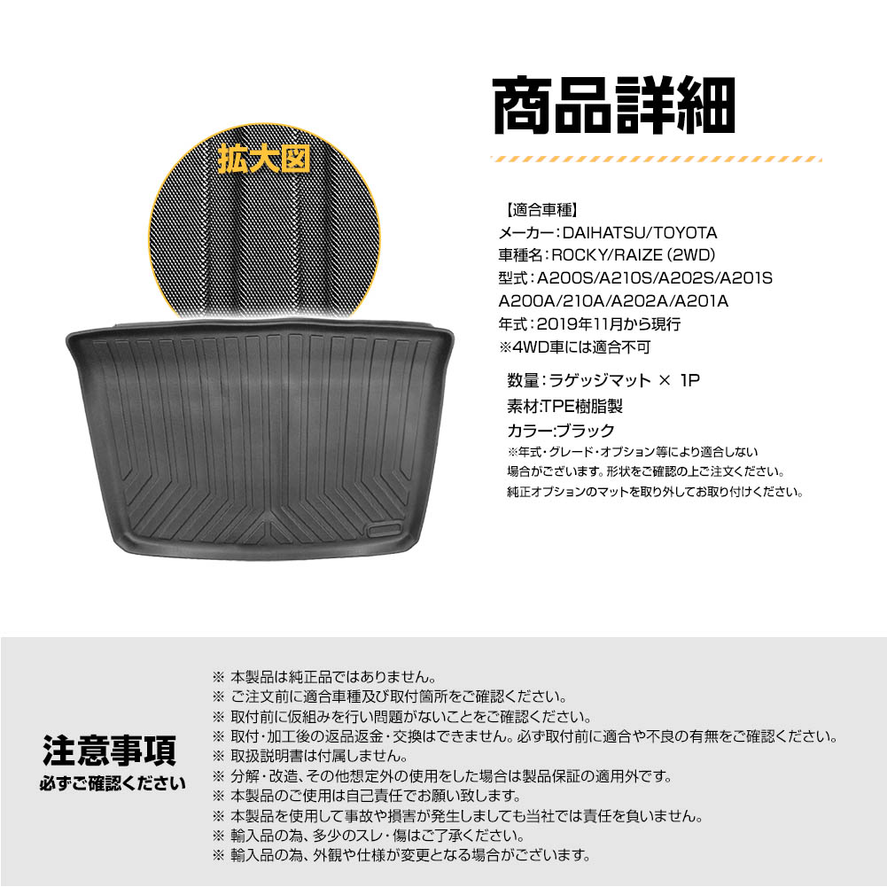 ロッキー ライズ 200系 デッキボード下段用 ラゲッジマット 防水マット 3D立体 トランクマット ラゲッジトレイ トランクトレイ