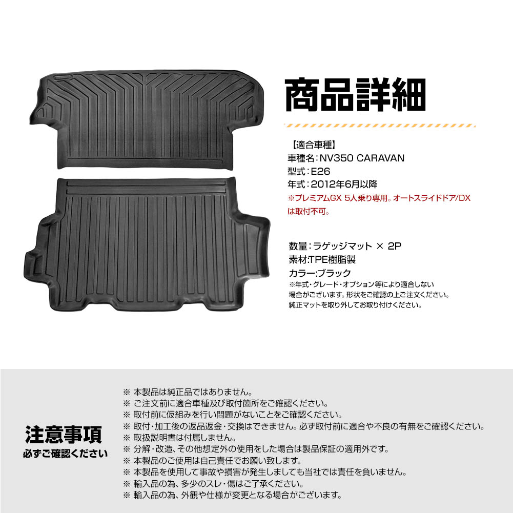 • NV350 キャラバン E26 ラゲッジマット プレミアムGX 5人乗り専用 3D立体設計 3Dマット 3D立体マット 3D 防水マット ラバーマット 防水