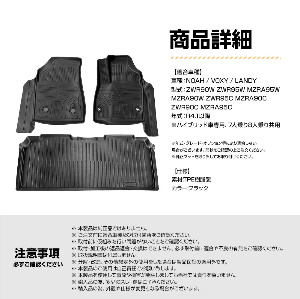90系 ノア ヴォクシー ランディ 専用3D立体フロアマット!(1列目+2列目レール隠し)