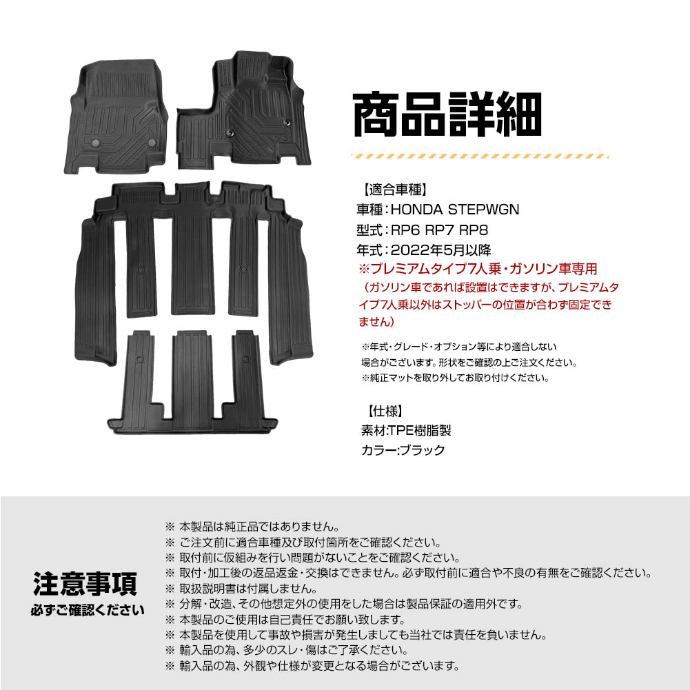 • ステップワゴン RP6 RP7 RP8 フロアマット 1列目 2列目 3列目 専用設計 3D立体設計 3Dマット 防水マット ラバーマット 防水 ガソリン車