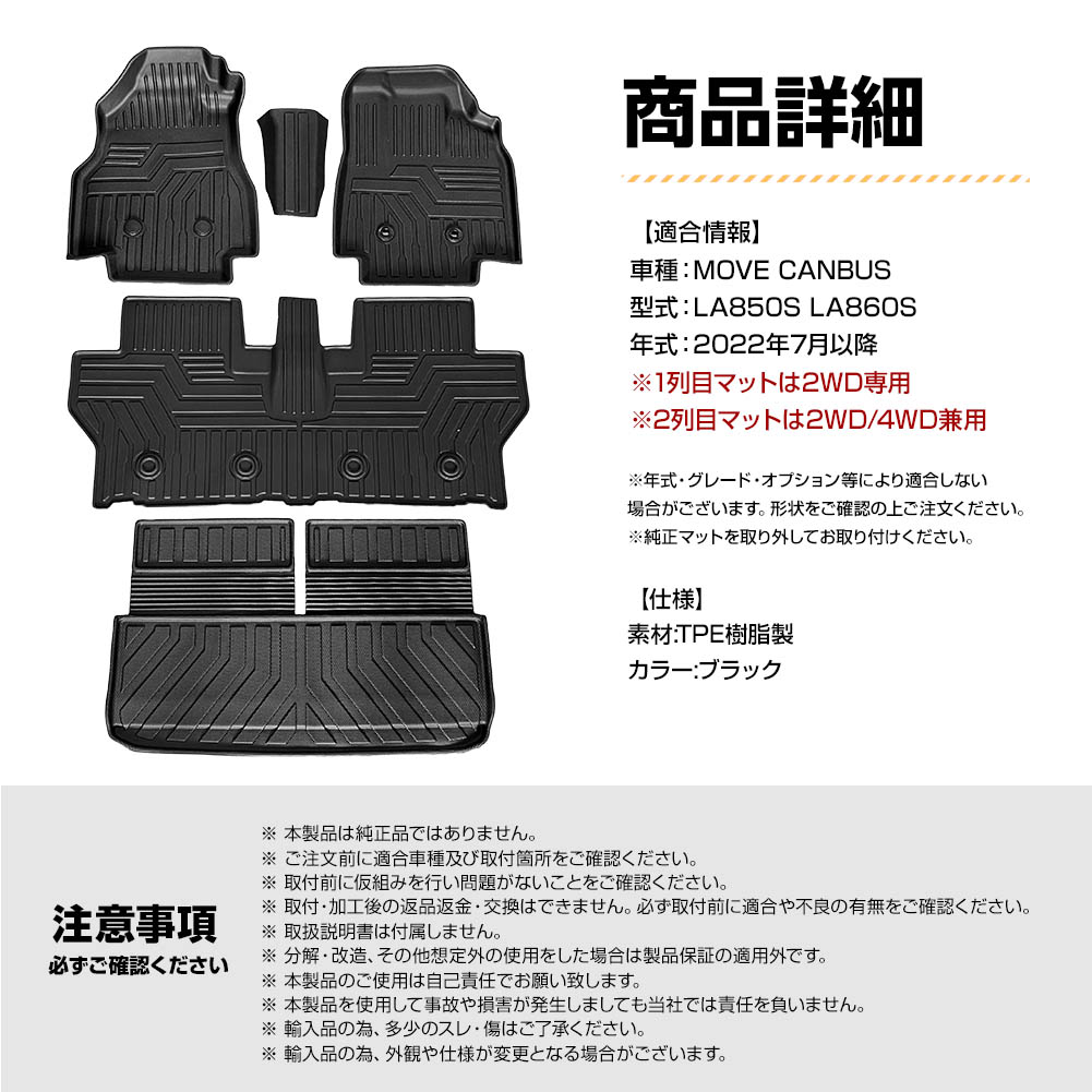 ムーブキャンバス(LA850S/LA860S)専用3D立体フロアマット!(1台分フルセット)