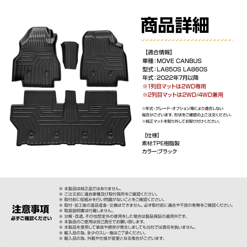 ムーブキャンバス(LA850S/LA860S)専用3D立体フロアマット!(1列目から2列目までのセット)