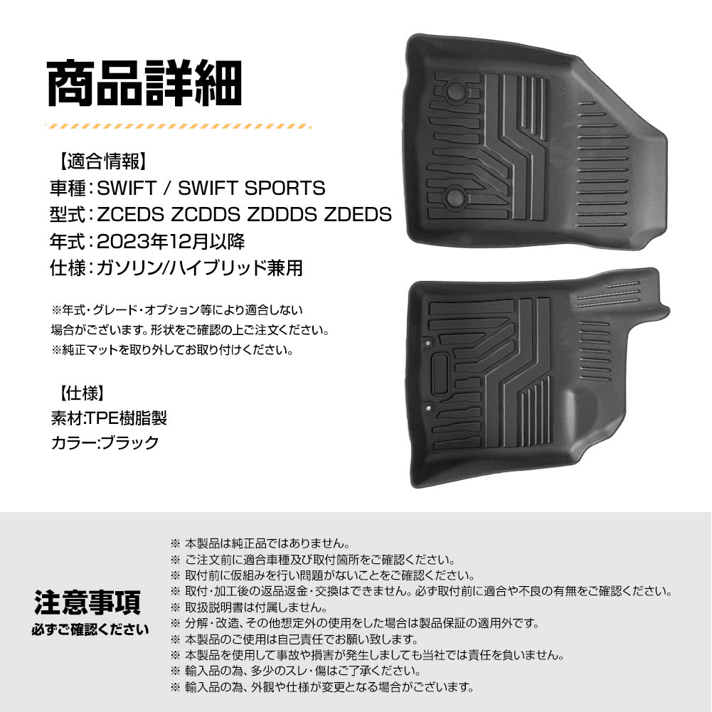 スイフトZC/ZD系専用3D立体フロアマット!(1列目のみ)