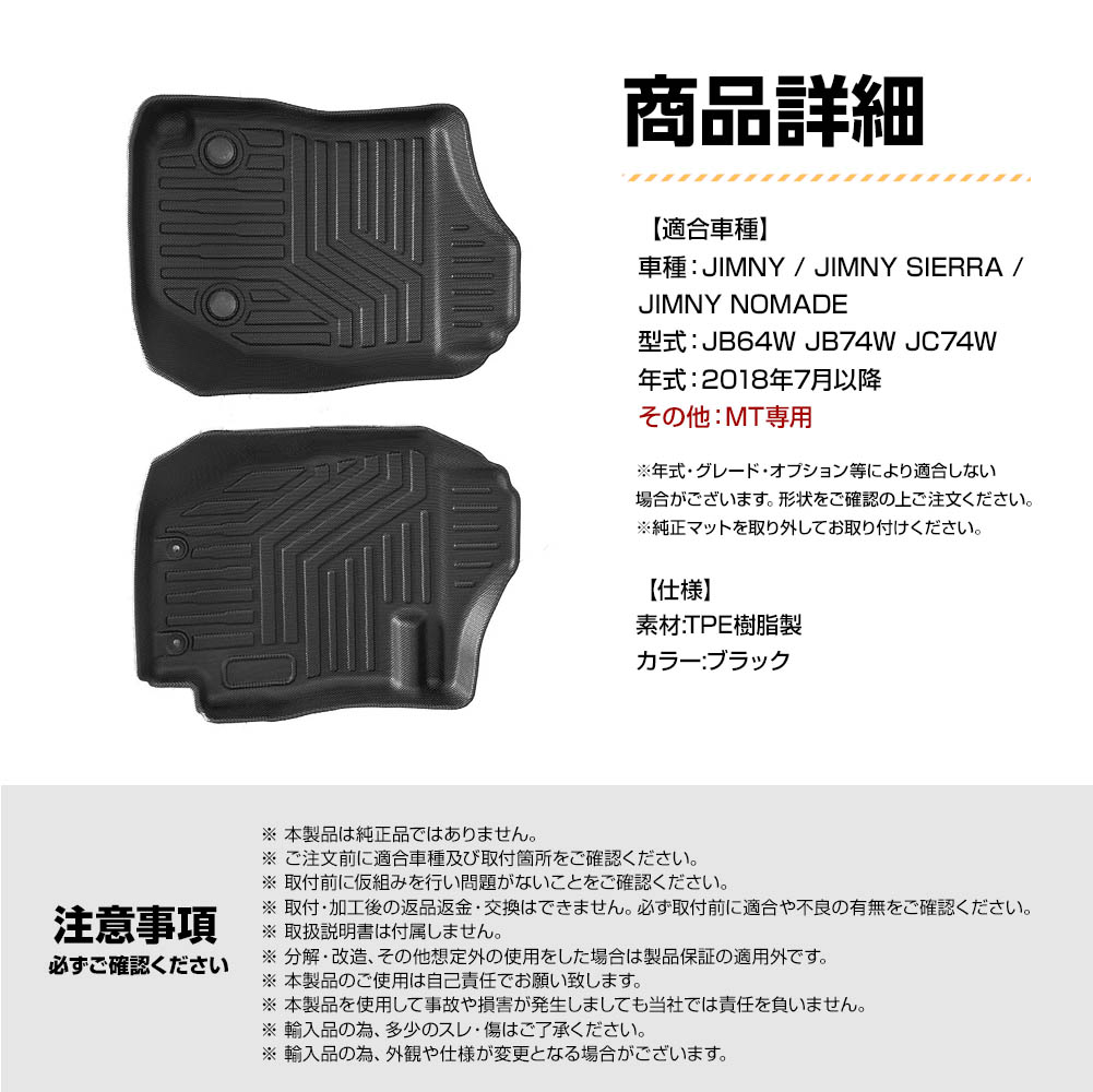 • ジムニー シエラ ノマド JB64W JB74W JC74W フロアマット 3Dマット 立体マット 防水マット ラバーマット 立体カーマット 1列目 MT車用