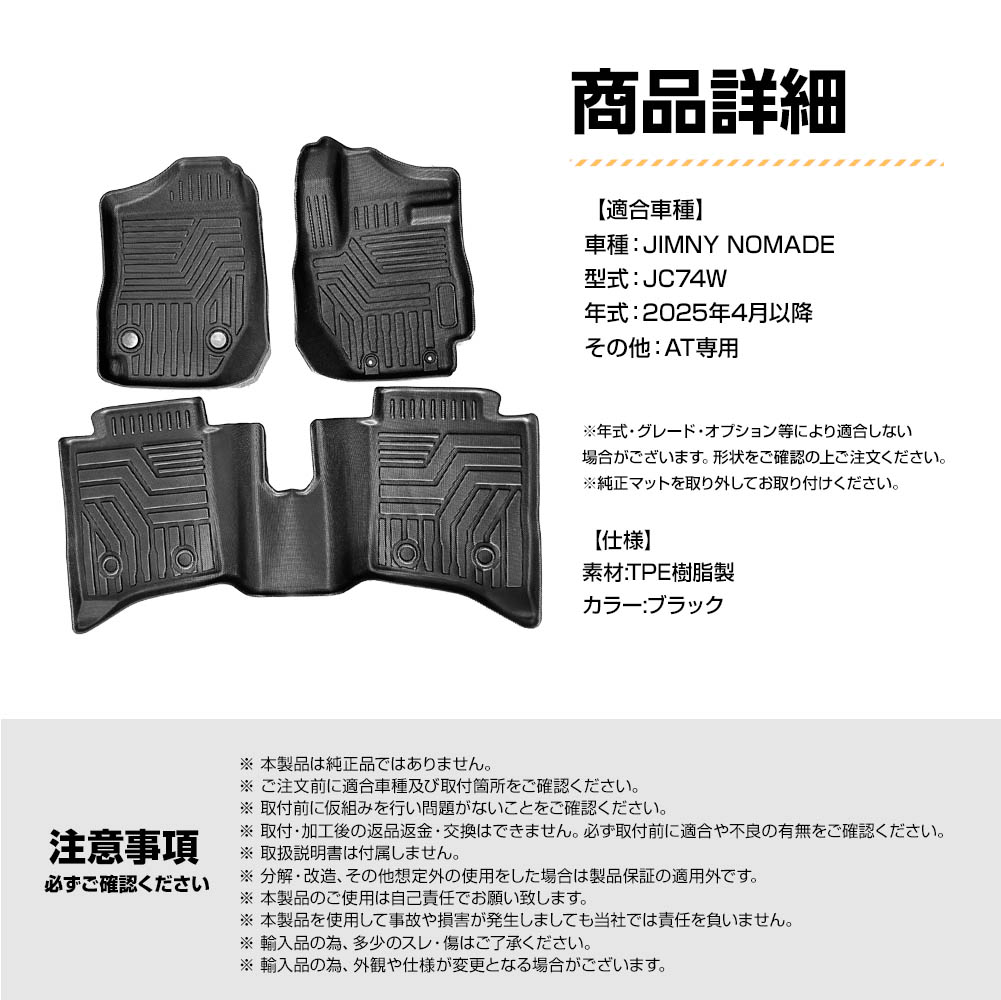 ジムニー ノマド JC74W フロアマット 3Dマット 立体マット 防水マット ラバーマット 立体カーマット 1列目から2列目 AT車用