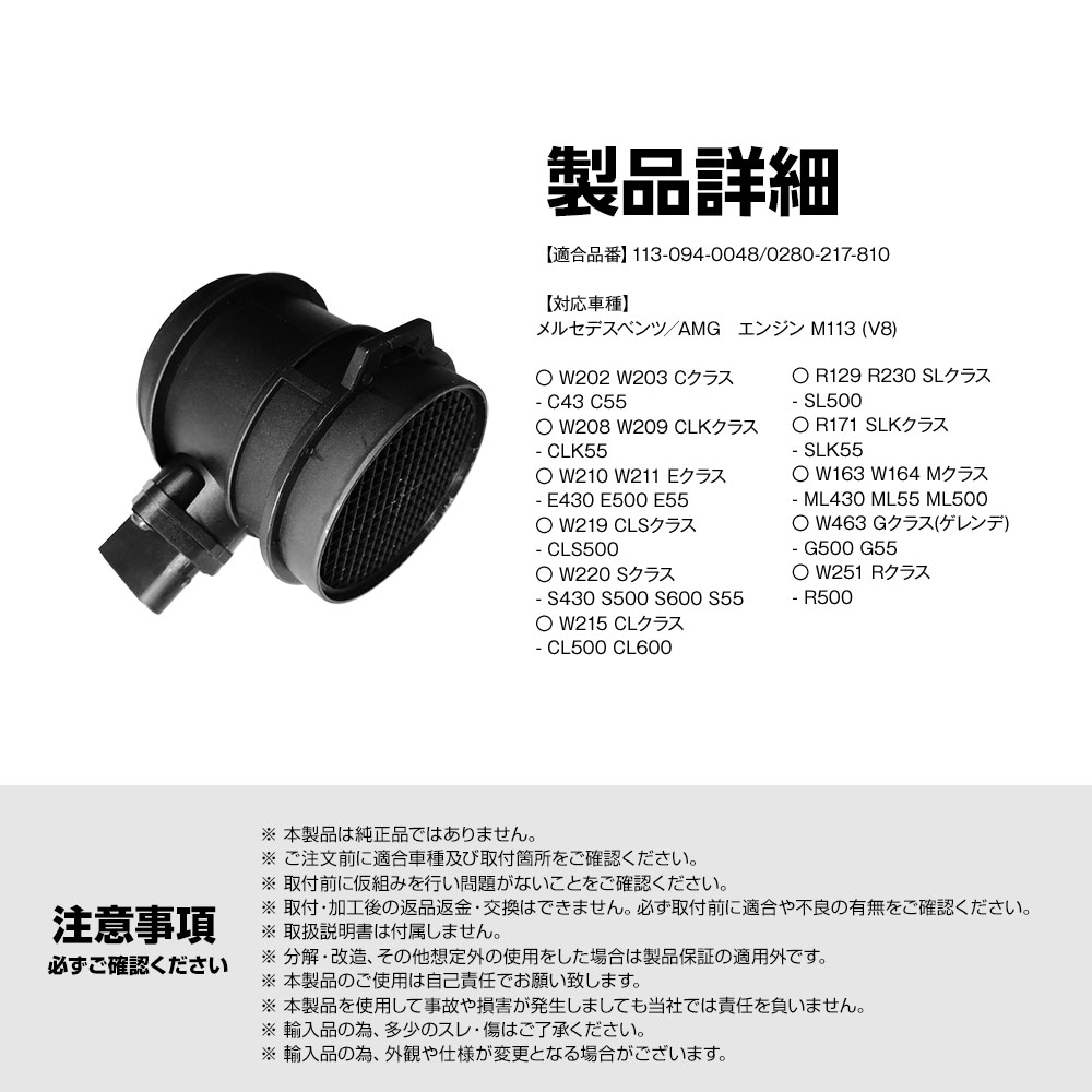 エアマスセンサー エアフロセンサー エアフロメーター W163 W164 Mクラス ML430 ML55 ML500 エアマス エアフロ 1130940048 0280217810