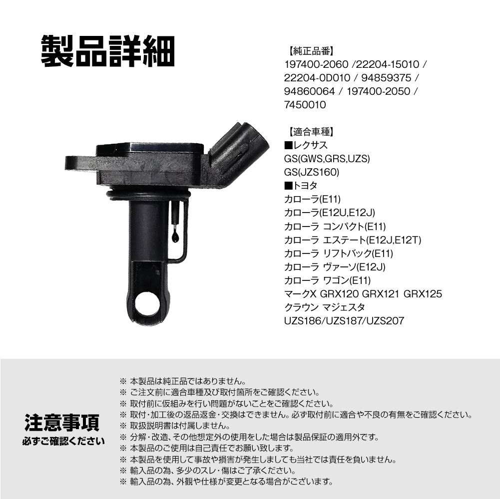 エアマスセンサー エアフロセンサー エアフロメーター レクサス SC UZZ40 GS UZS161 JZS160 エアマス エアフロ 197400-2060 22204-15010