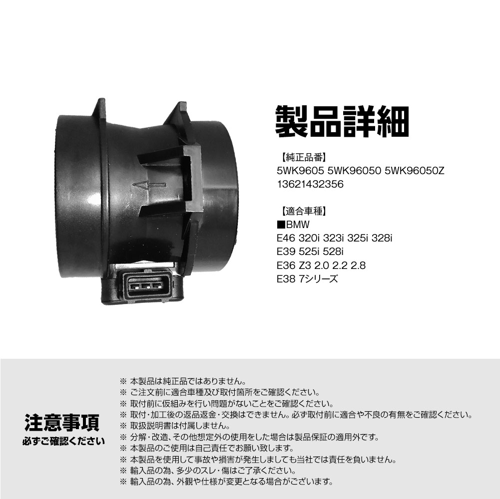 エアマスセンサー エアフロセンサー エアフロメーター BMW E46 320i 323i 325i 328i 5WK9605 5WK96050 5WK96050Z 13621432356