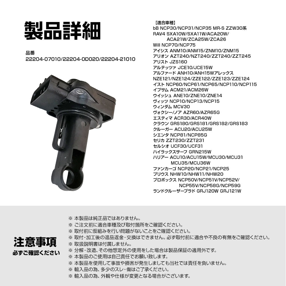 エアマスセンサー エアフロセンサー エアフロメーター アルファード ANH10W ANH15W 197400-2030 197400-3010 22204-22010