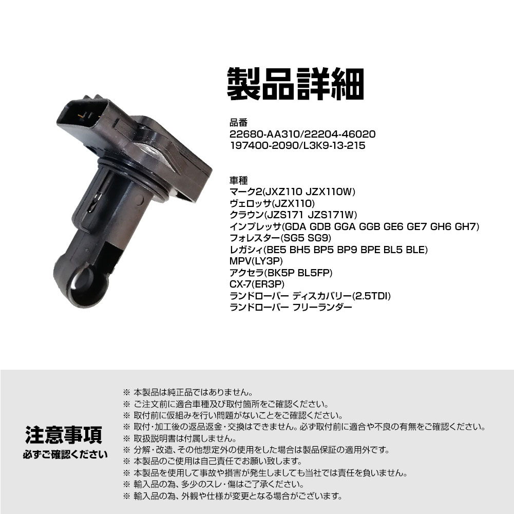 エアマスセンサー エアフロセンサー エアフロメーター レガシィ BE5 BH5 BP5 BP9 BPE BL5 BLE エアマス エアフロ 22680-AA310