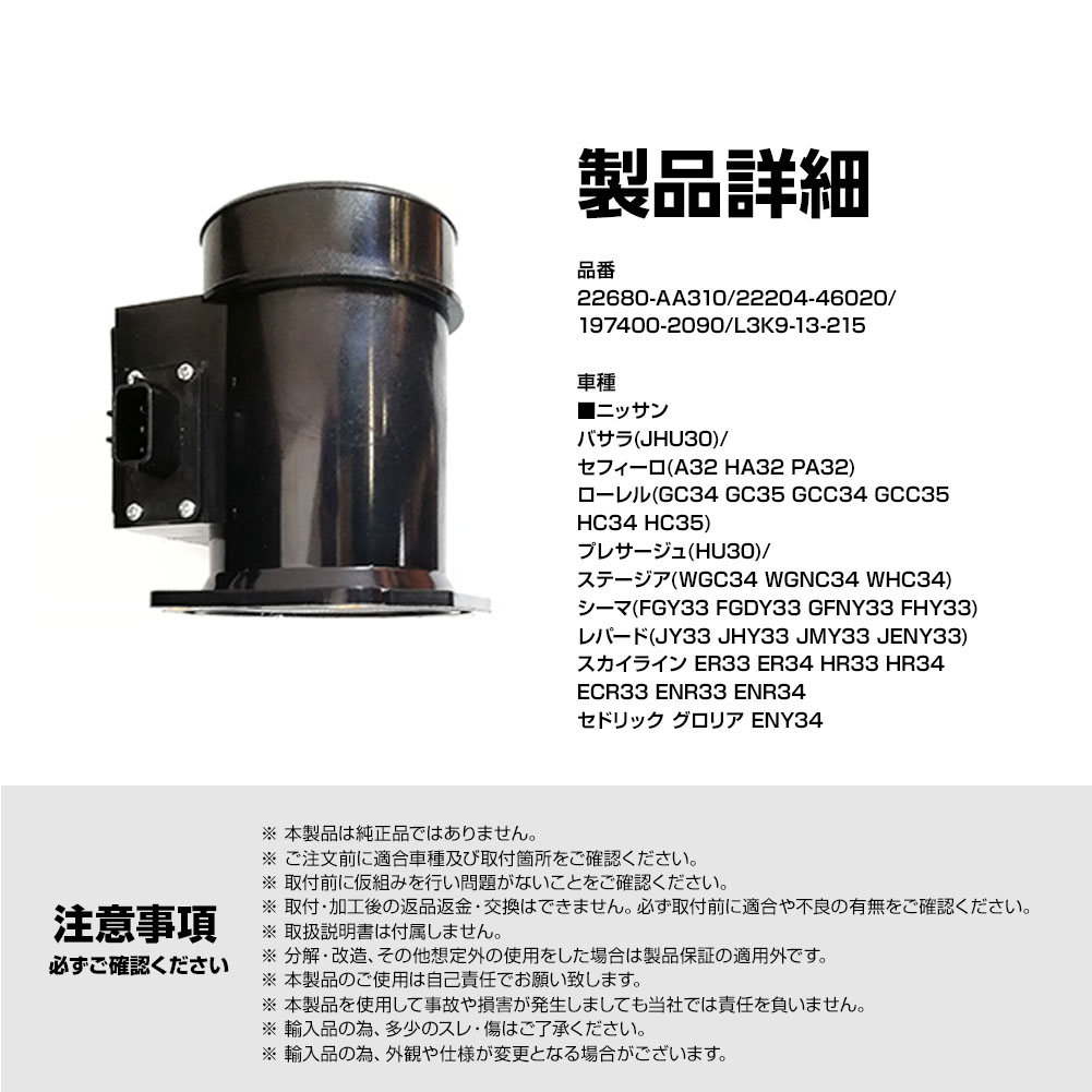エアマスセンサー エアフロセンサー エアフロメーター ステージア M35 エアマス エアフロ 22680-7S000 22680-AW400 22680-CA000