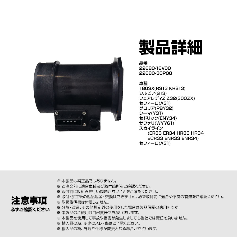 エアマスセンサー エアフロセンサー エアフロメーター 180SX RS13 KRS13 シルビア S13 フェアレディZ Z32 300ZX 22680-16V00 22680-30P00