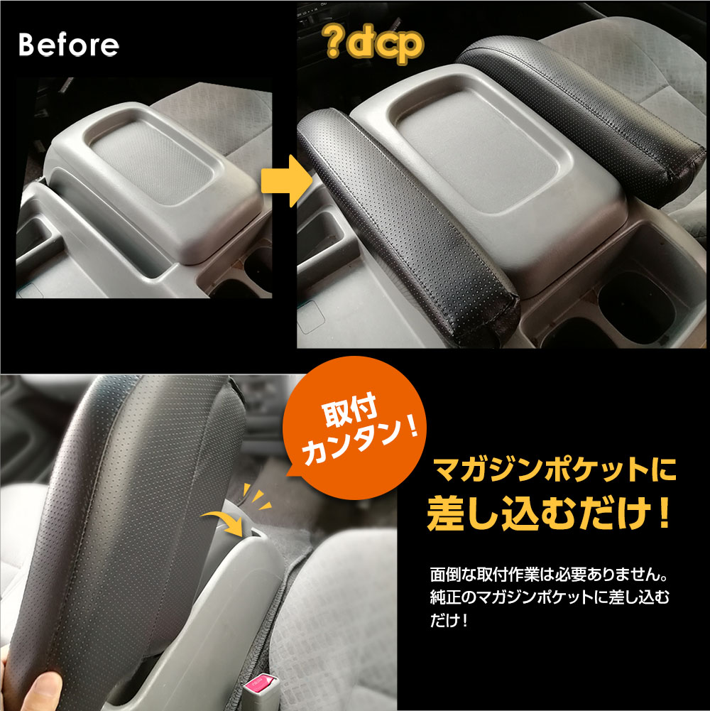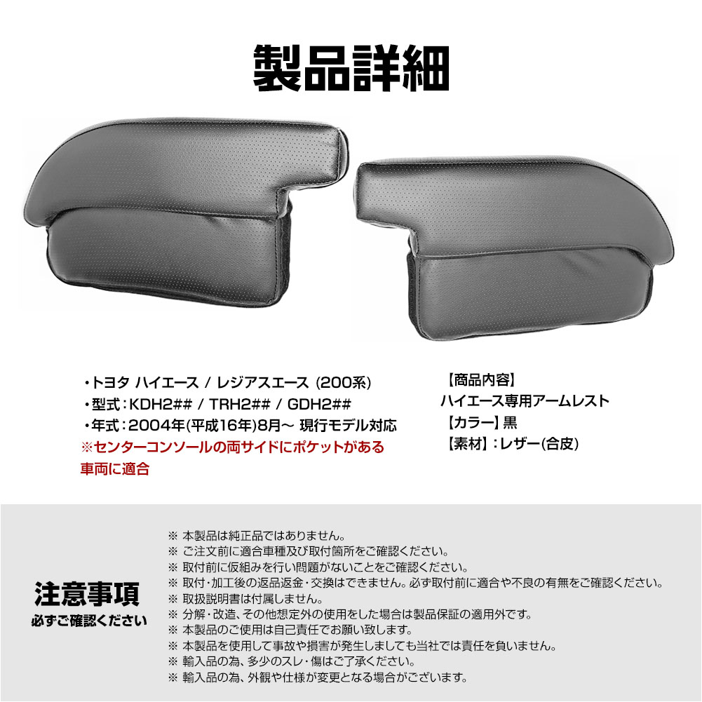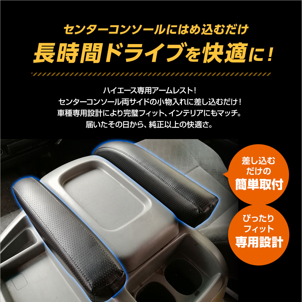 200系 ハイエース アームレストカバー 1型 2型 3型 4型 5型 PVC レザー 肘置き カバー ブラック センターコンソールカバー アームレスト