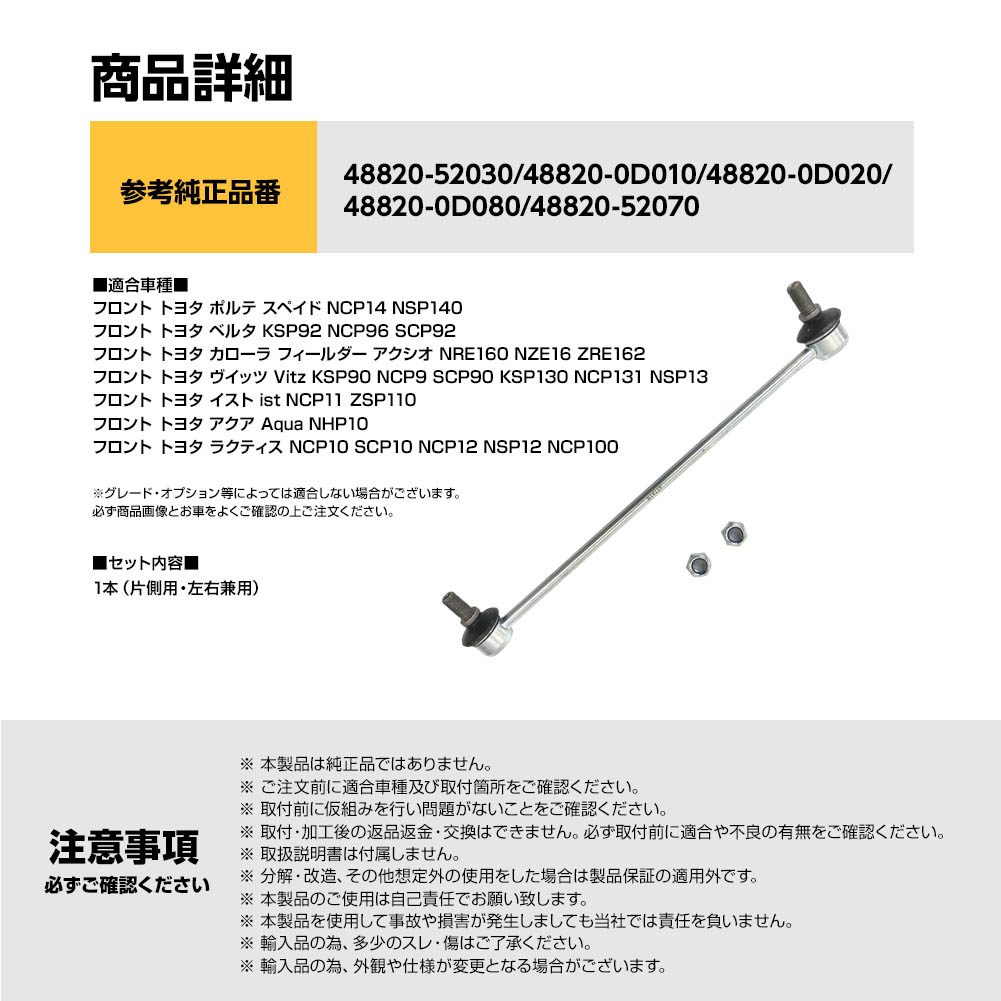 フロント スタビリンク スタビライザーリンク トヨタ ベルタ KSP92 NCP96 SCP92 片側 1本 左右共通 48820-52030 48820-0D010 48820-0D020