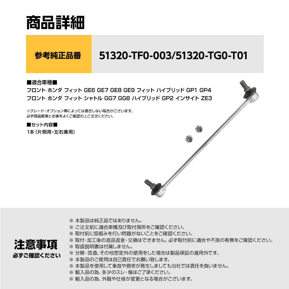 フロント スタビリンク スタビライザーリンク フィット シャトル GG7 GG8 ハイブリッド GP2 インサイト ZE3 片側 左右共通 51320-TF0-003