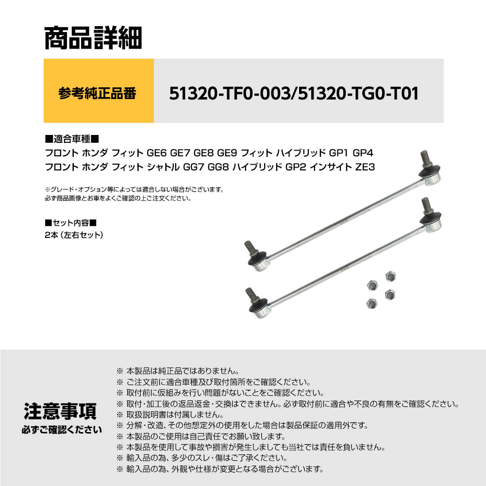 フロント スタビリンク スタビライザーリンク フィット シャトル GG7 GG8 ハイブリッド GP2 インサイト ZE3 2本 左右共通 51320-TF0-003