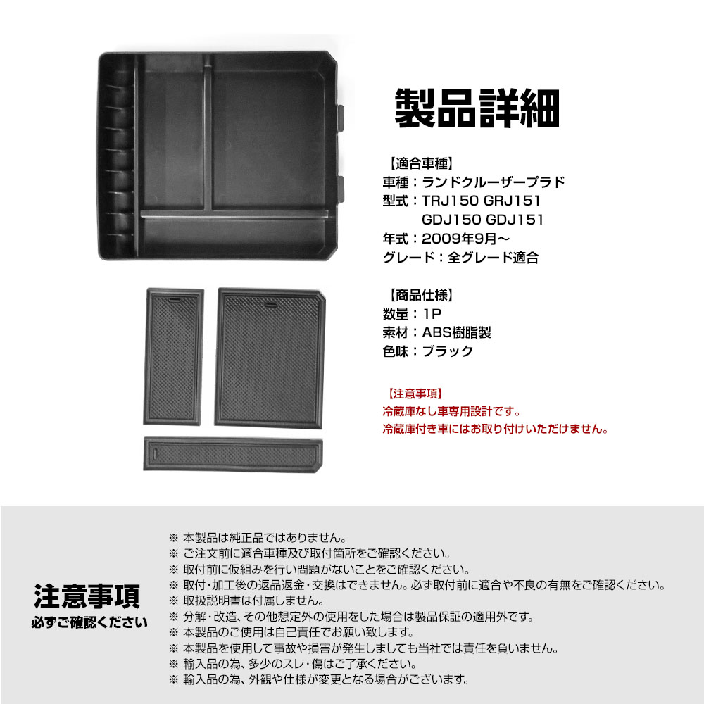ランドクルーザープラド150系 アクセサリー カスタム パーツ アームレスト内蔵ボックス ロゴ無し冷蔵庫無し用/無塗装 コンソールボックス センターコンソール PRADO インソールトレイ インコンソール 滑り止めゴム アームレスト 内蔵ボックス