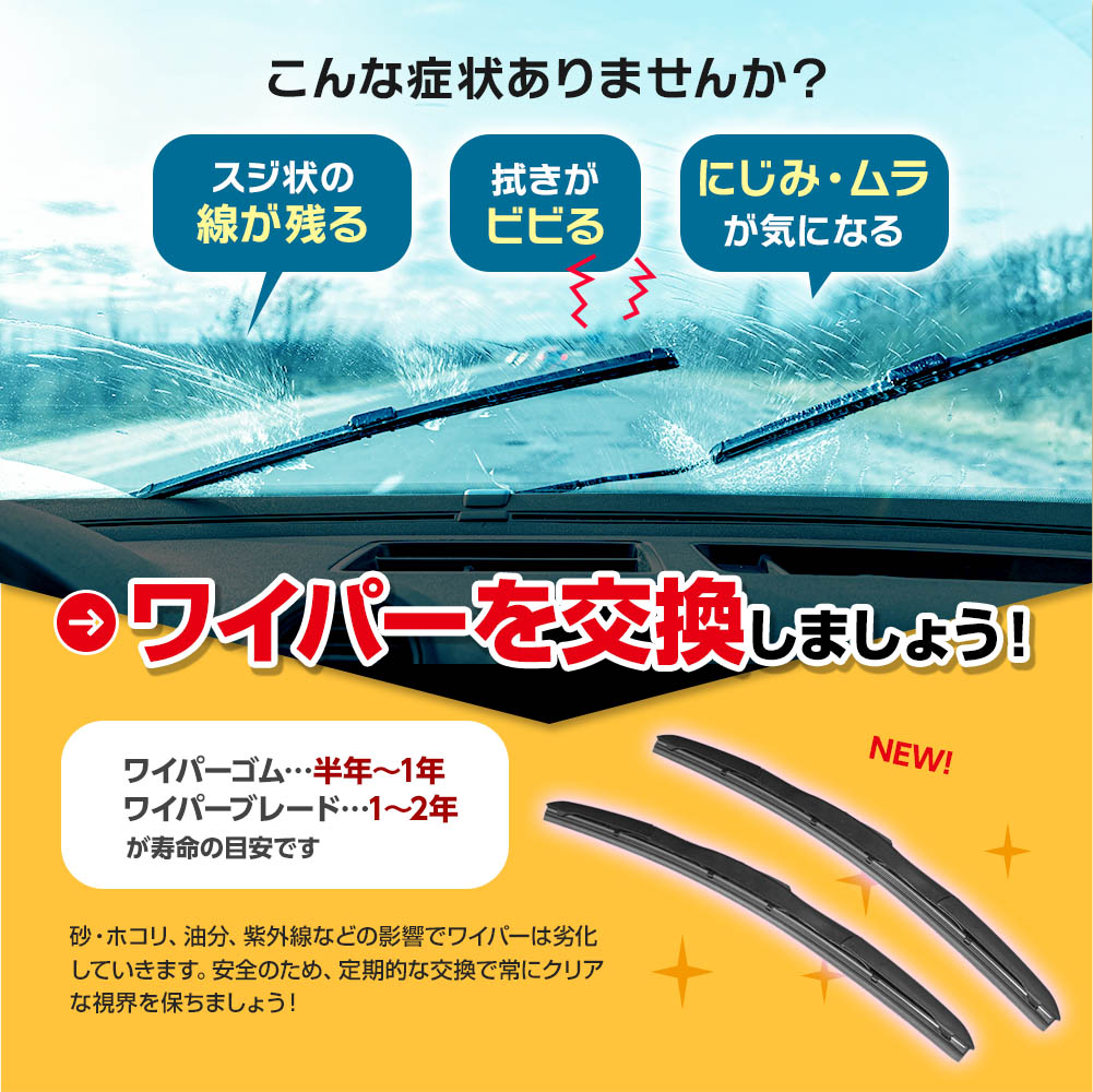 エアロ ワイパー ブレード ゴム グラファイト ドレスアップ U字 フック 台風 ゲリラ 豪雨 対策 交換 メンテナンス