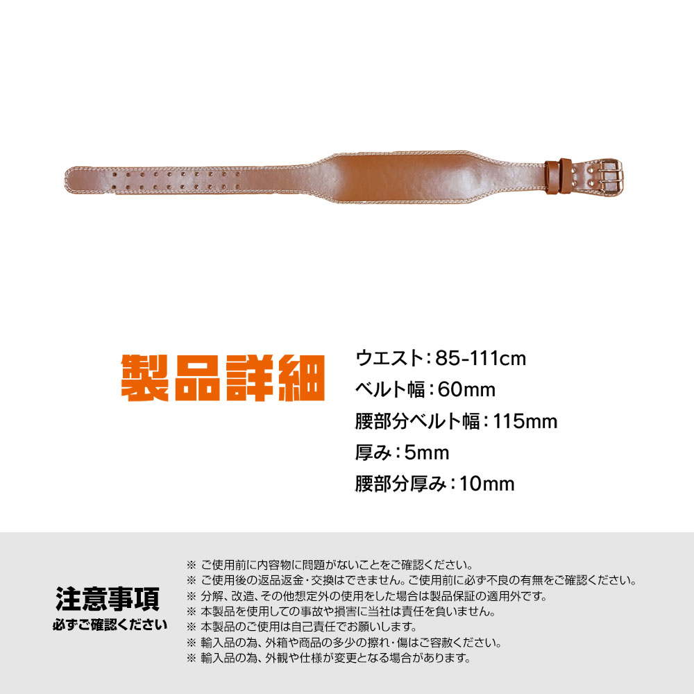 トレーニングベルト パワーベルト 筋トレ ベルト レザー ウエイト リフティングベルト 幅11.5cm サイズ 130㎝ 茶色 ブラウン
