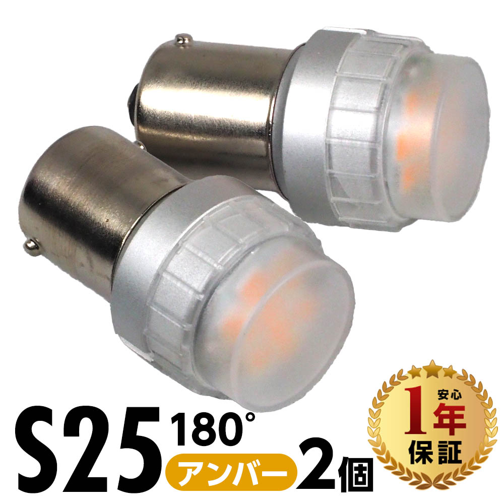 LEDバルブ S25 アンバー 1700K 180° 650lm 12V 2本 LED バルブ ウィンカー サイドマーカー テールランプ 無極性 車用 電球 交換 明るい