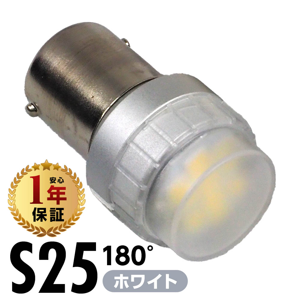 S25ピン角180°形状の汎用LEDバルブは、12V専用車両に対応しており、ストップランプやテールランプ、ウィンカーなどの多用途に最適です。