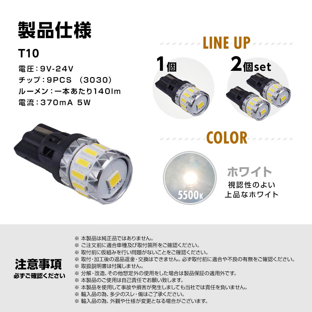 LEDバルブ T10 ホワイト 5500K 140lm 12V LED バルブ ポジション ライセンス ナンバー バニティ ラゲッジ ルームランプ 無極性 長寿命
