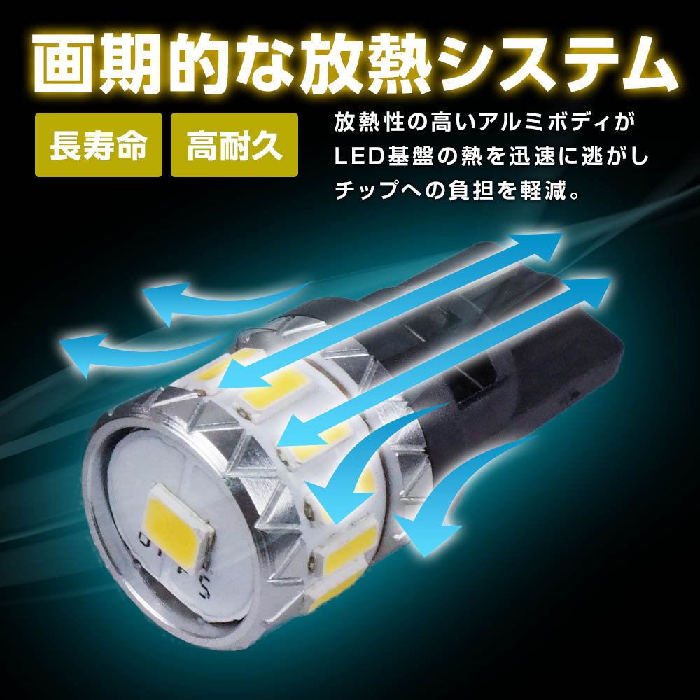 LEDバルブ T10 ホワイト 5500K 140lm 12V 2本 LED バルブ ポジション ライセンス ナンバー バニティ ラゲッジ ルームランプ 無極性 長寿命