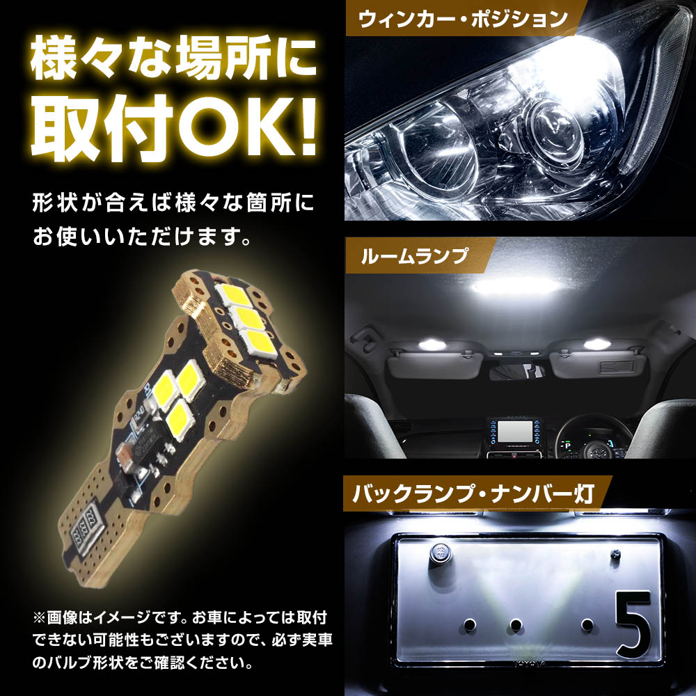 ・ライセンスプレートライトやインテリアライト:汎用性の高いT16バルブは、ライセンスプレートの照明や、車内のインテリアライトにも使用できます。車両をスタイリッシュに演出し、視認性も向上させます。
