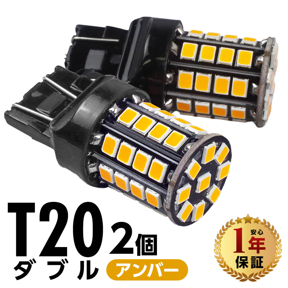 LEDバルブ T20 アンバー 1700K ダブル球 150lm 650lm 12V 24V 2本 LED バルブ ウィンポジ ウィンカー ポジション 無極性 車用 電球