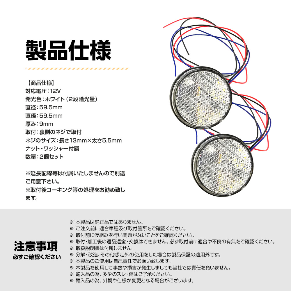 汎用 12V LEDリフレクター 反射板 丸形 ホワイト 白 サイドマーカー トラック トレーラー スモール ブレーキ 連動可能 サイドマーカー 2個