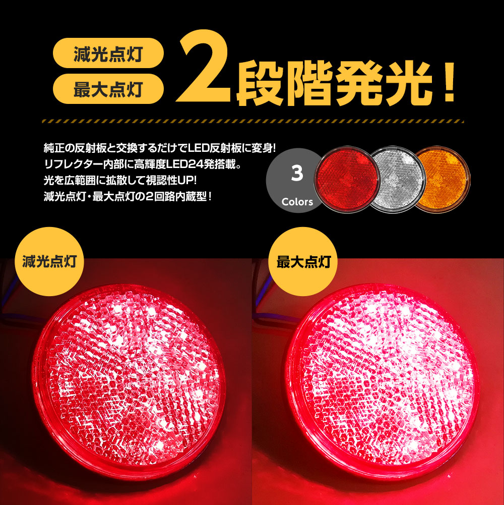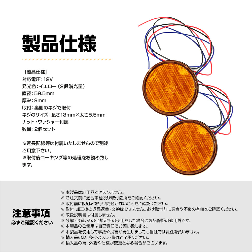 LED リフレクター サイドマーカー リアマーカー ウインカー 反射板 12V バイク 丸形 マーカー 2個 トレーラー オートバイ スクーター 汎用