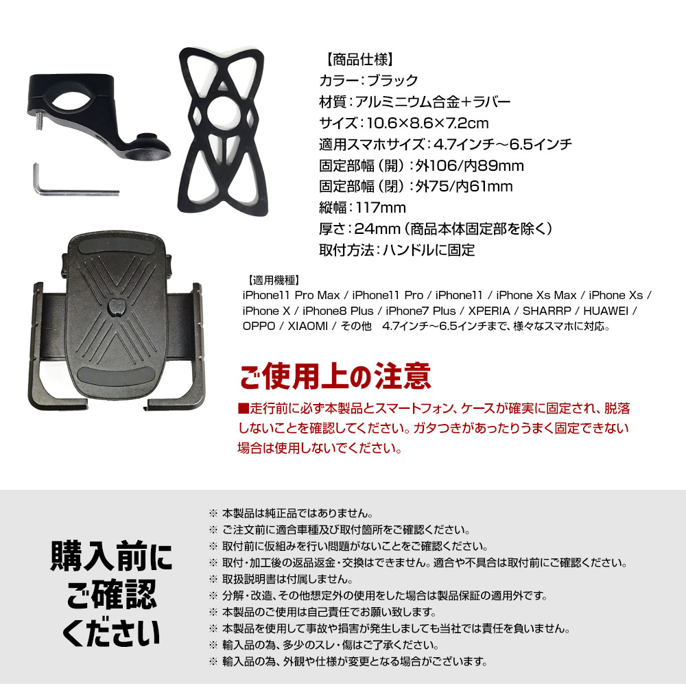 ■走行前にスマートフォンが確実に固定され、脱落しないことを確認してください。また、定期的に締め付けを確認してください。