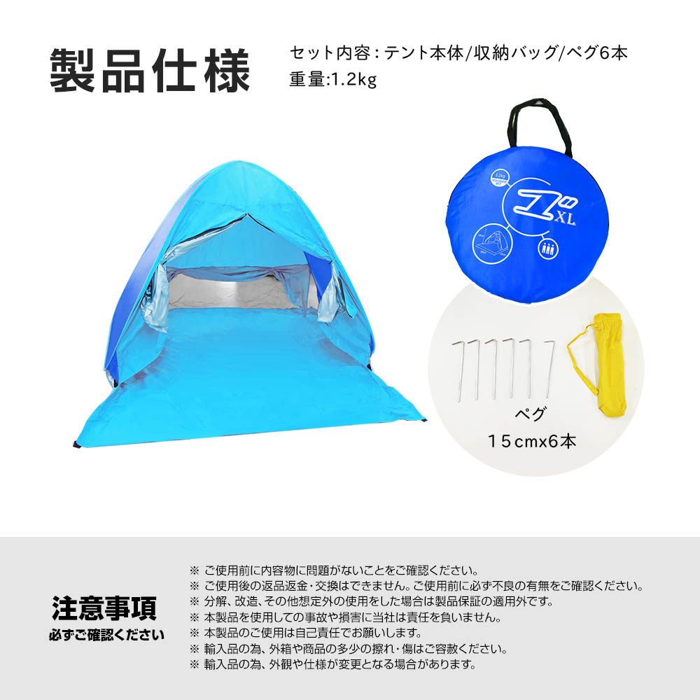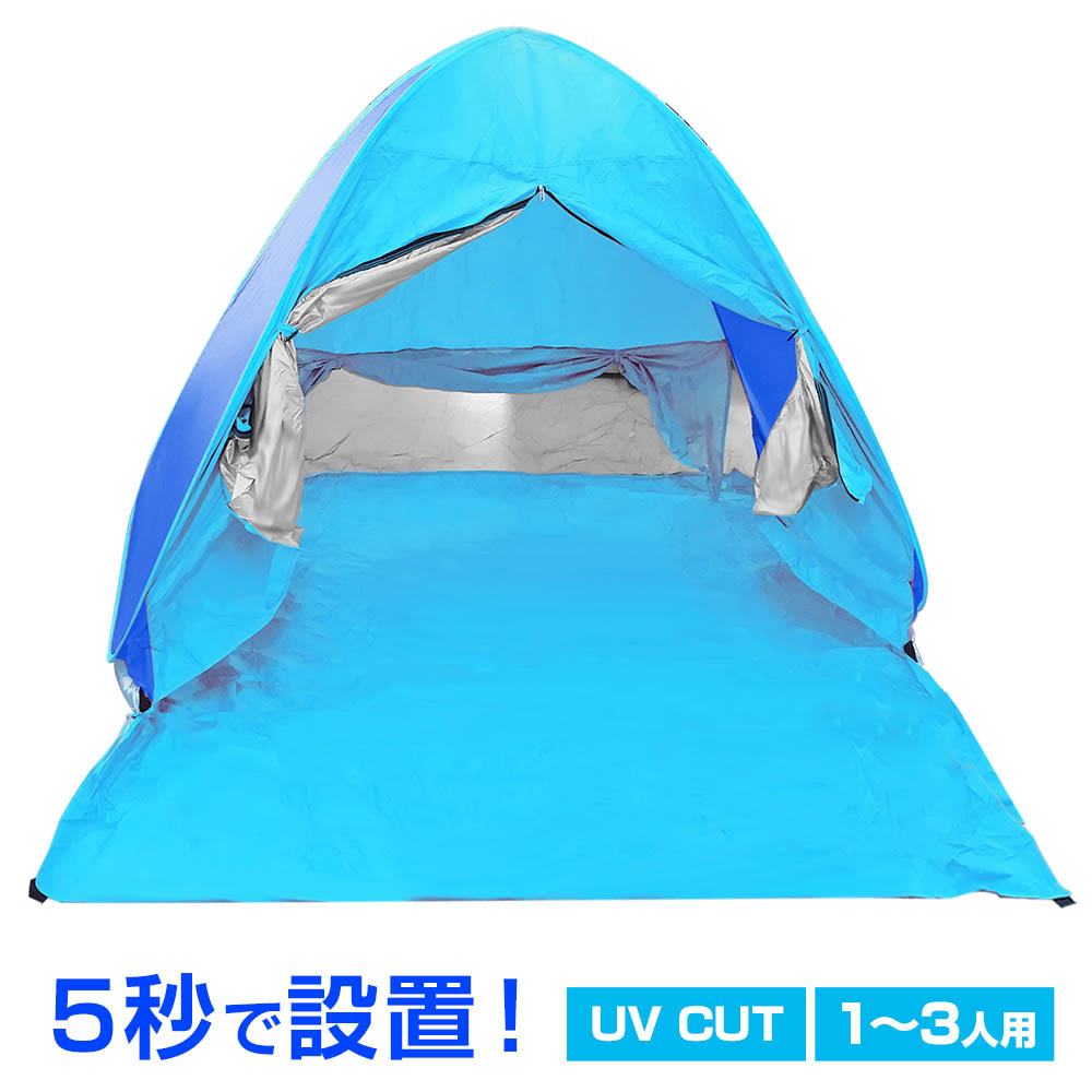 1~3人用 カーテン付き テント サンシェード ワンタッチ 防水 キャンプ フルクローズ ビーチテント サンシェードテント コンパクト ブルー