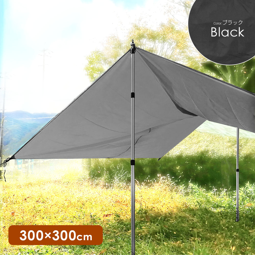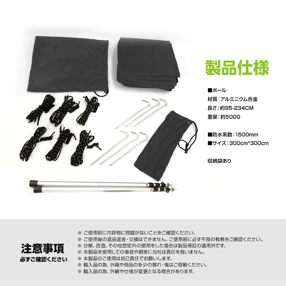 タープテント テントポール付き 収納袋つき 1~2人用 スクエアタープ テント タープ ポール キャンプ アウトドア レジャー 日除け ブラック
