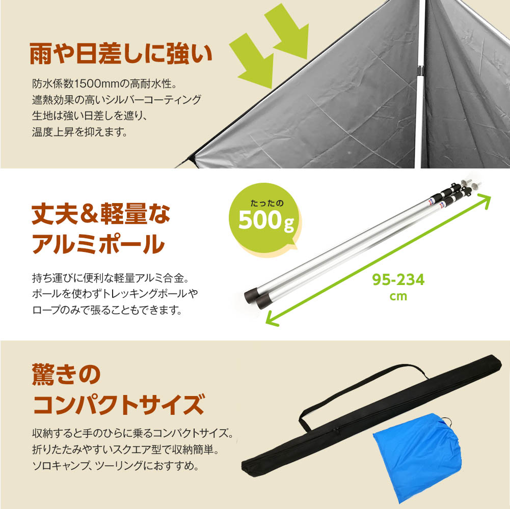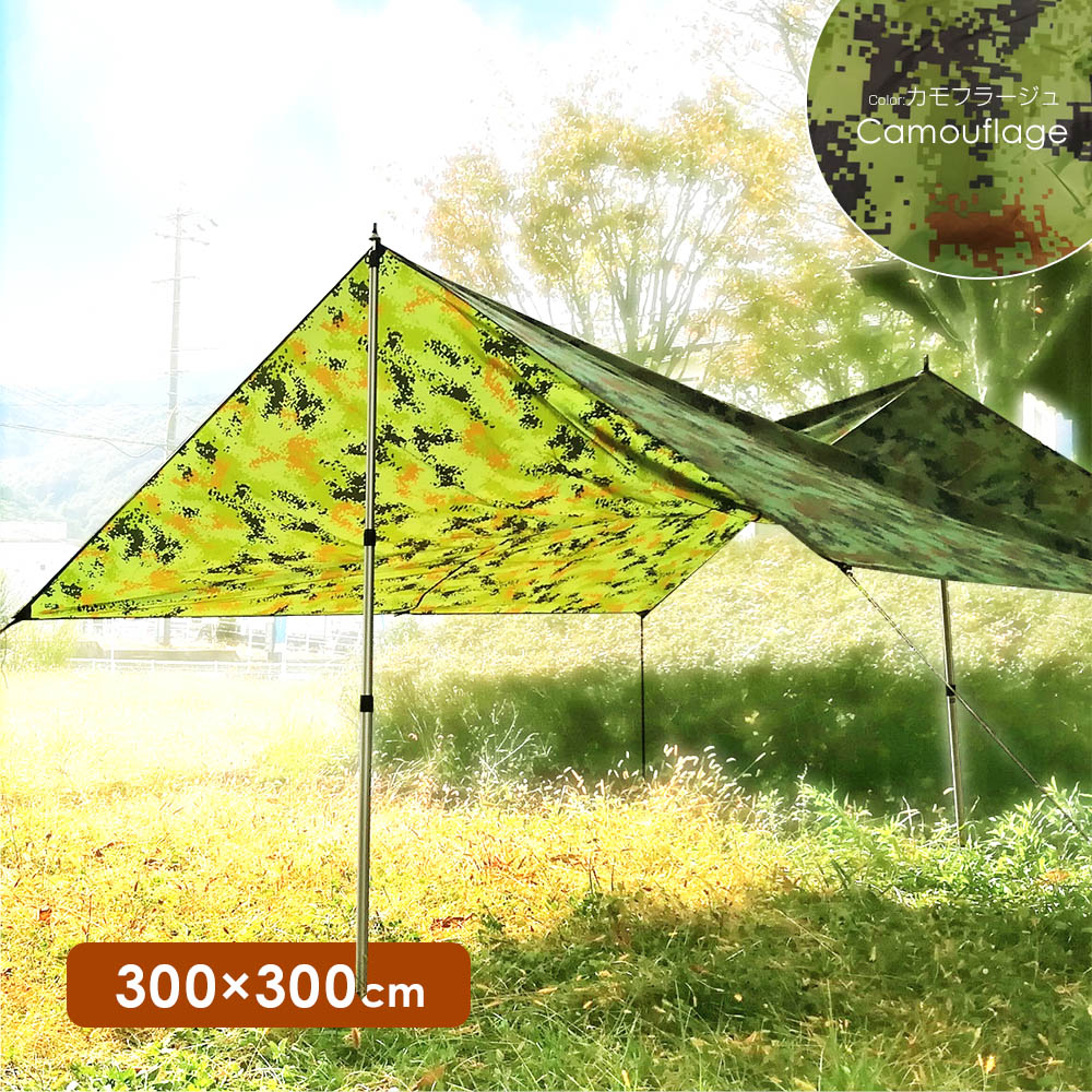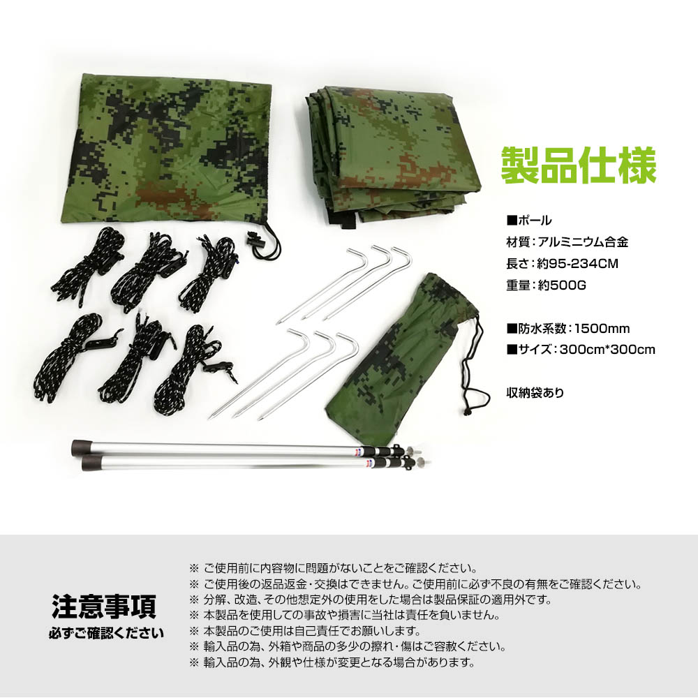 タープテント テントポール付き 収納袋つき 1~2人用 スクエアタープ テント タープ ポール キャンプ アウトドア レジャー 日除け カモフラ