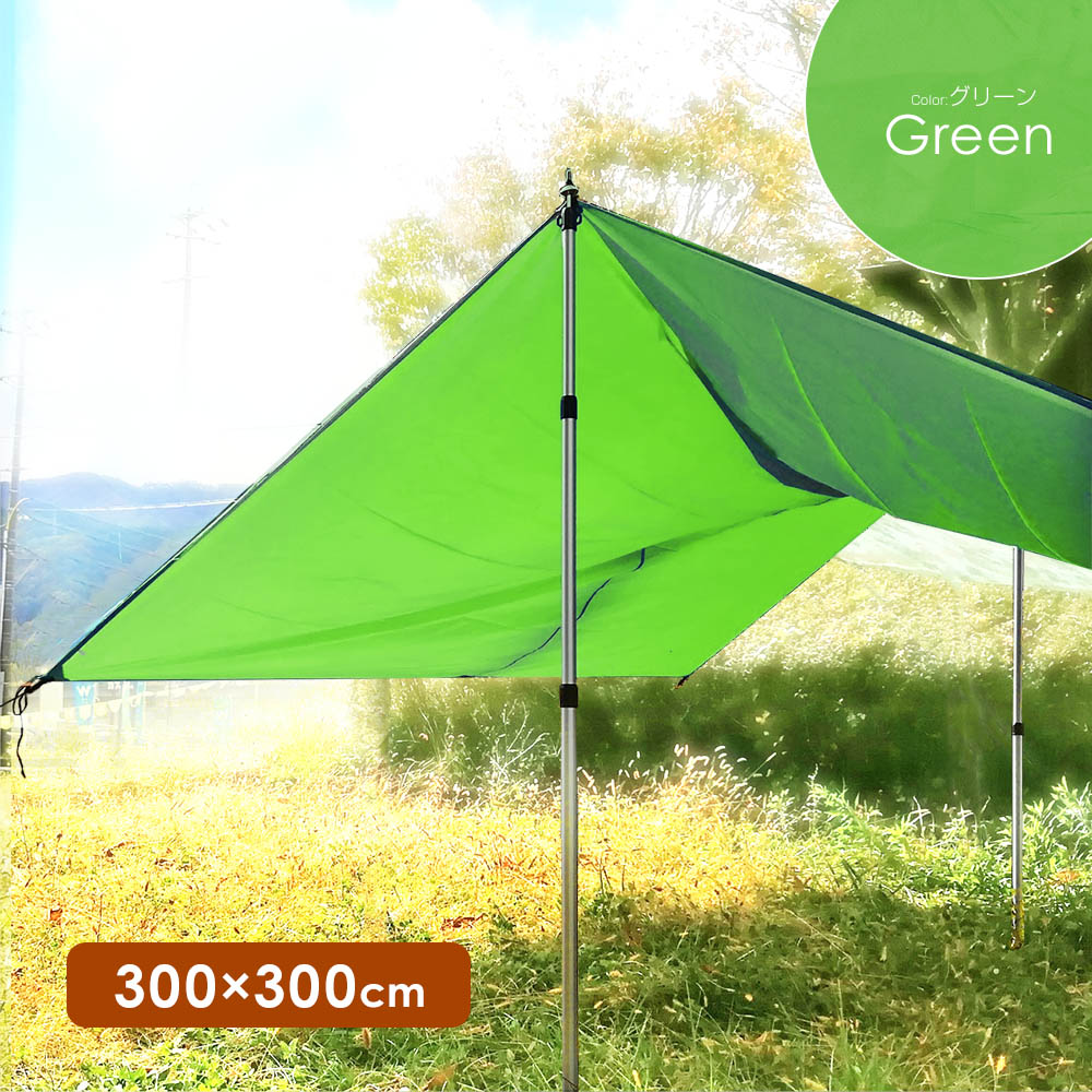 タープテント テントポール付き 収納袋つき 1~2人用 スクエアタープ テント タープ ポール キャンプ アウトドア レジャー 日除け グリーン