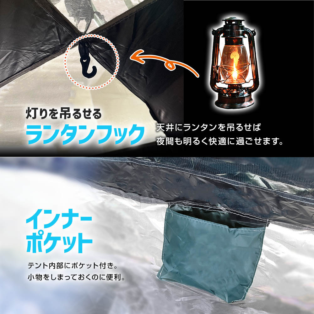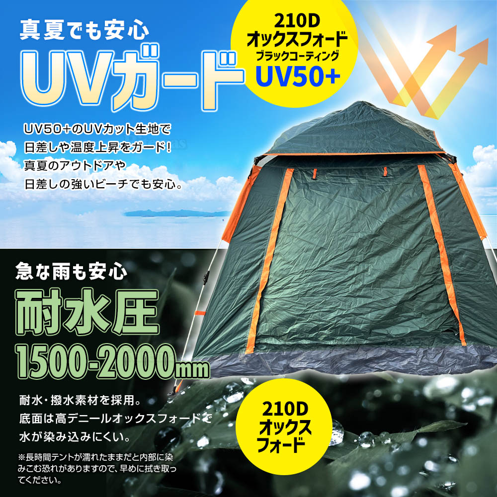 アウトドアやキャンプ、フェスティバルなど様々なシーンで活躍するワンタッチドーム型テントです。