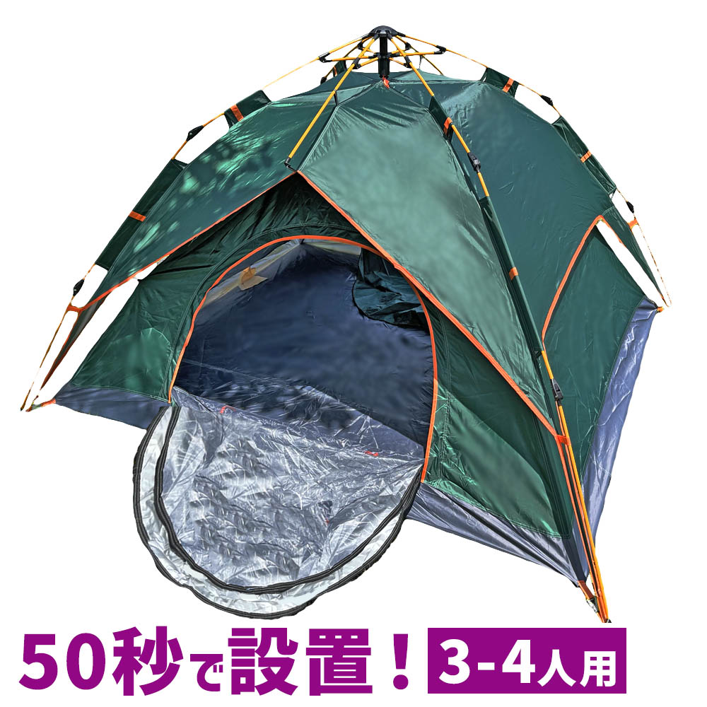 ワンタッチで簡単に設置可能な2ドア2WAYのドーム型テント(3〜4人用)