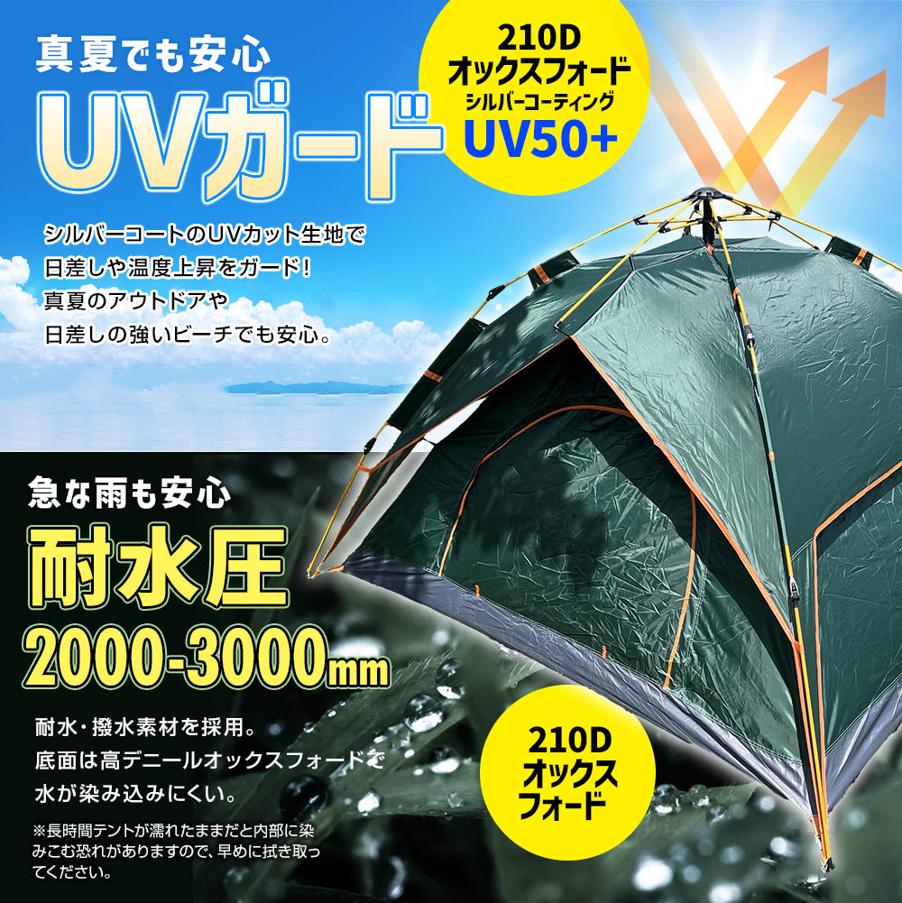 アウトドアやキャンプ、フェスティバルなど様々なシーンで活躍するワンタッチドーム型テントです。