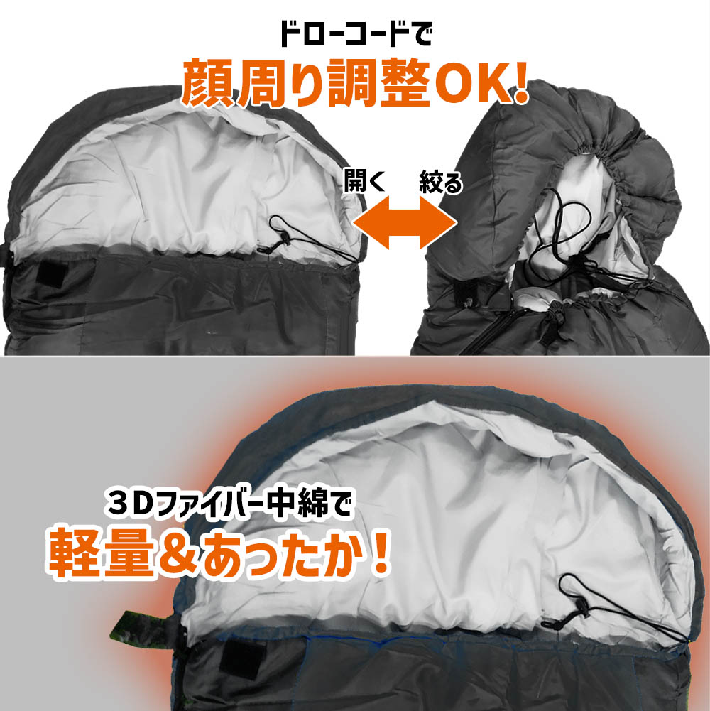 ドローコード付きのフードで内部の空気を逃さず寒さ対策が可能です。