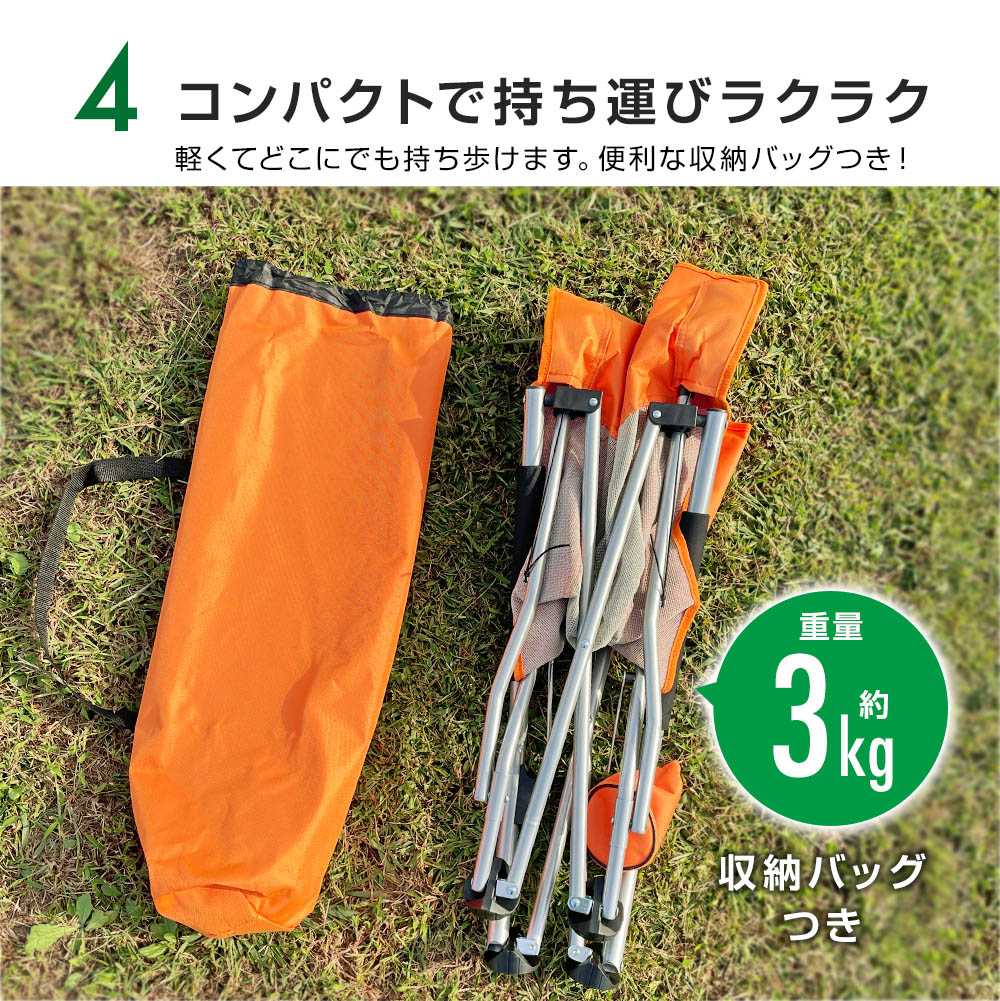 ゆったり座れるワイドなサイズ感ながら、撤収時はスリムに折りたたみ可能。