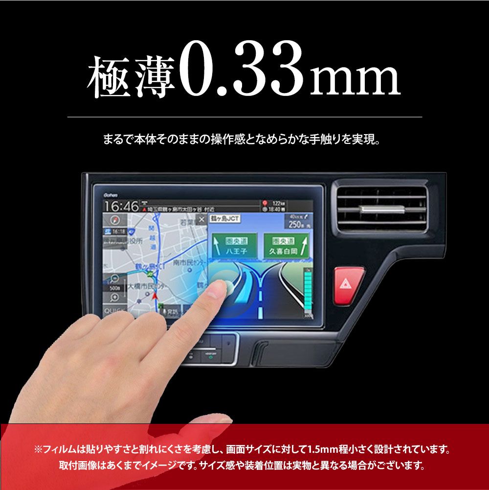 優れた透光性、HD画質完璧再生。ナビ本来の美しさを妨げることなく、 装着していることを忘れてしまうほどの薄さはナビをしっかりと守ってくれます。