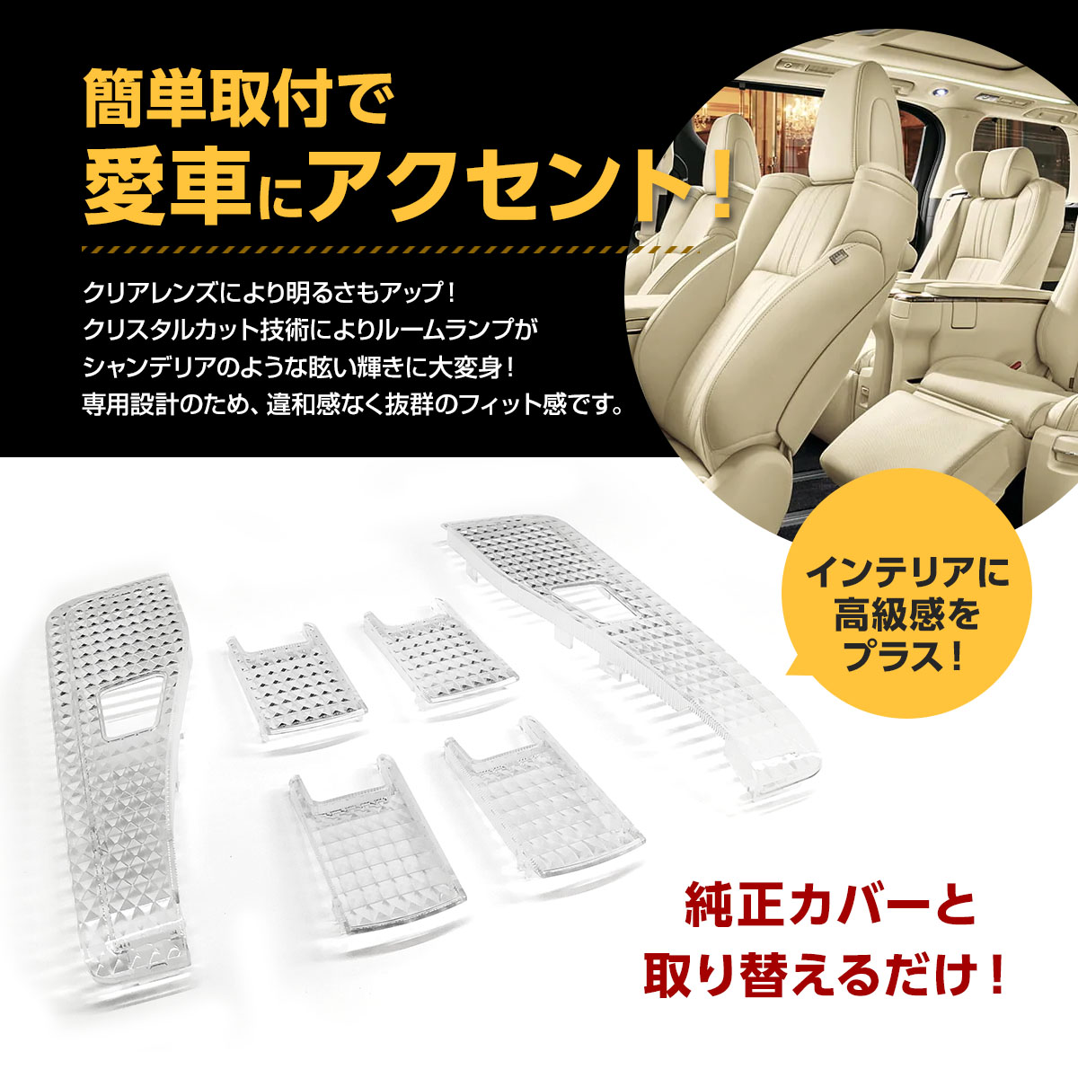 車内を簡単に高級感漂う空間に。クリアレンズにより明るさもアップ!
