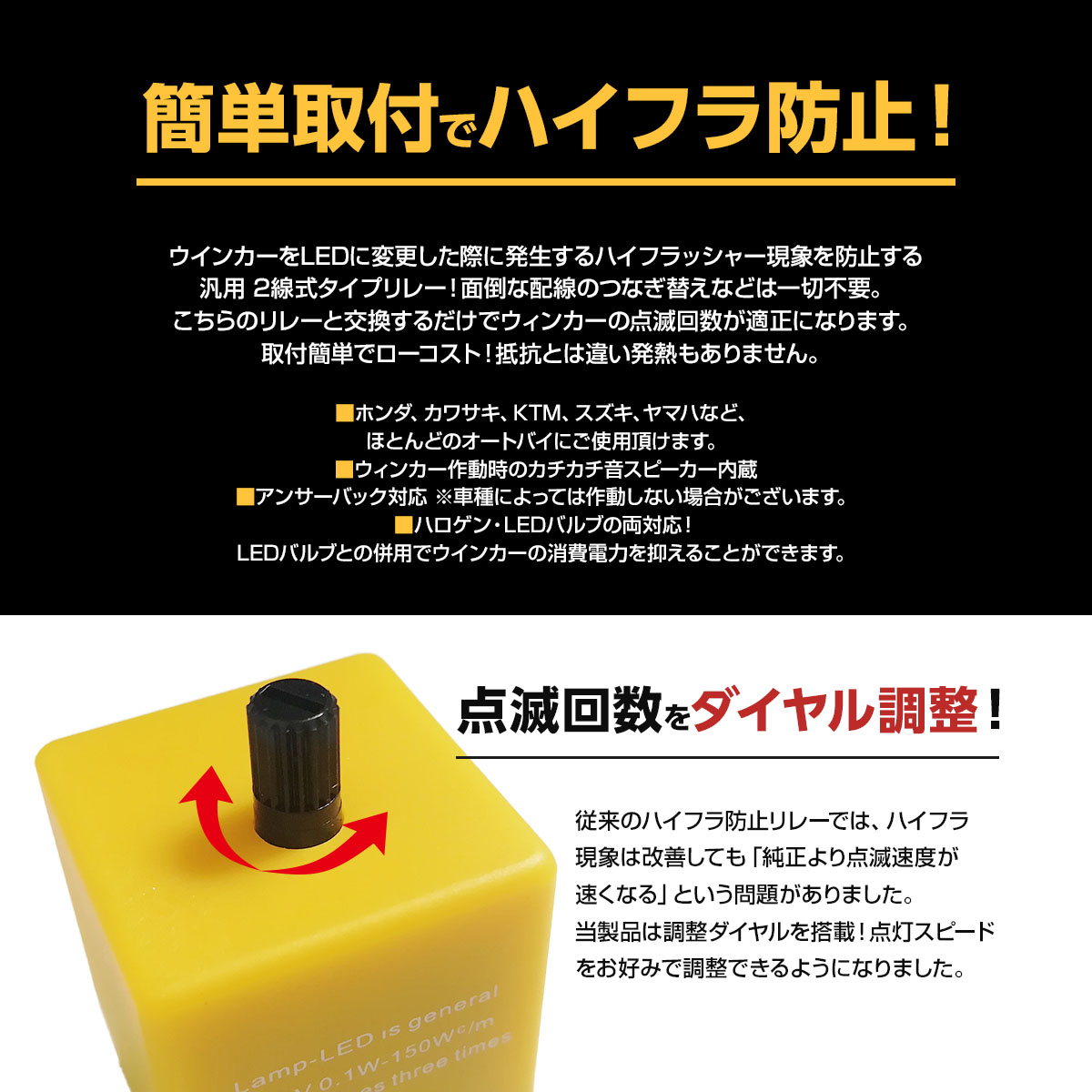 ウインカーをLEDに変更した際に発生するハイフラッシャー現象を防止します。
