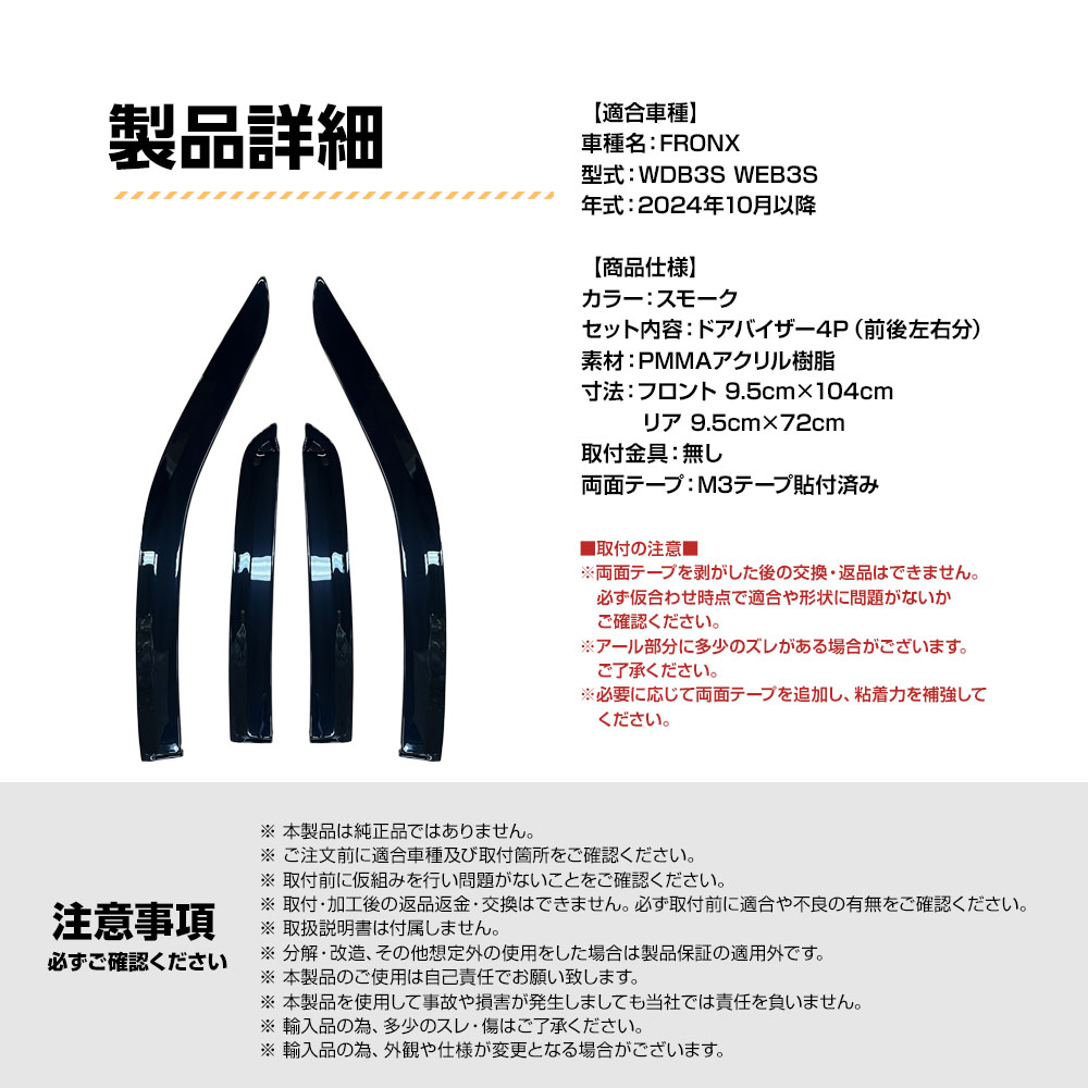 フロンクス WDB3S WEB3S ドアバイザー ドア サイド ウインドウ バイザー サイドバイザー スモーク 運転席 助手席 雨避け 日避け